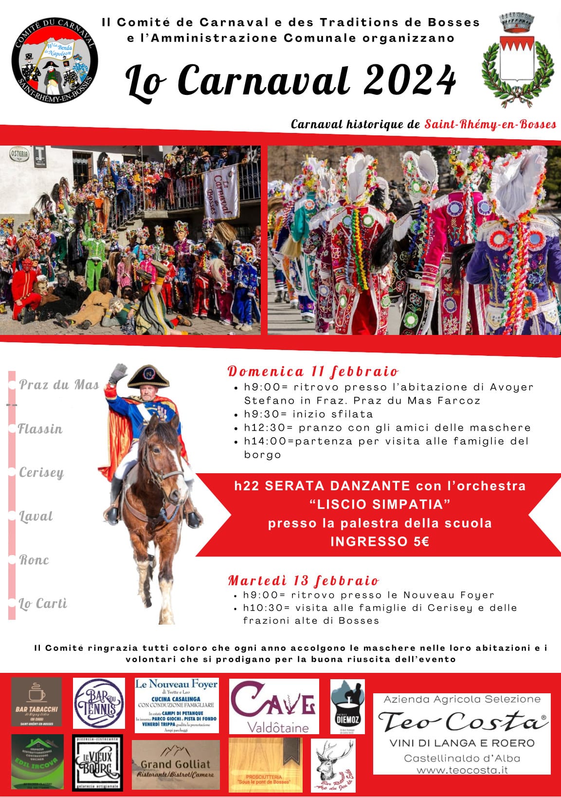 Un carnevale storico, dalle origini antiche. La tradizione lega la nascita del carnevale al passaggio di Napoleone attraverso il Colle del Gran San Bernardo, nel maggio del 1800, durante la campagna d’Italia.