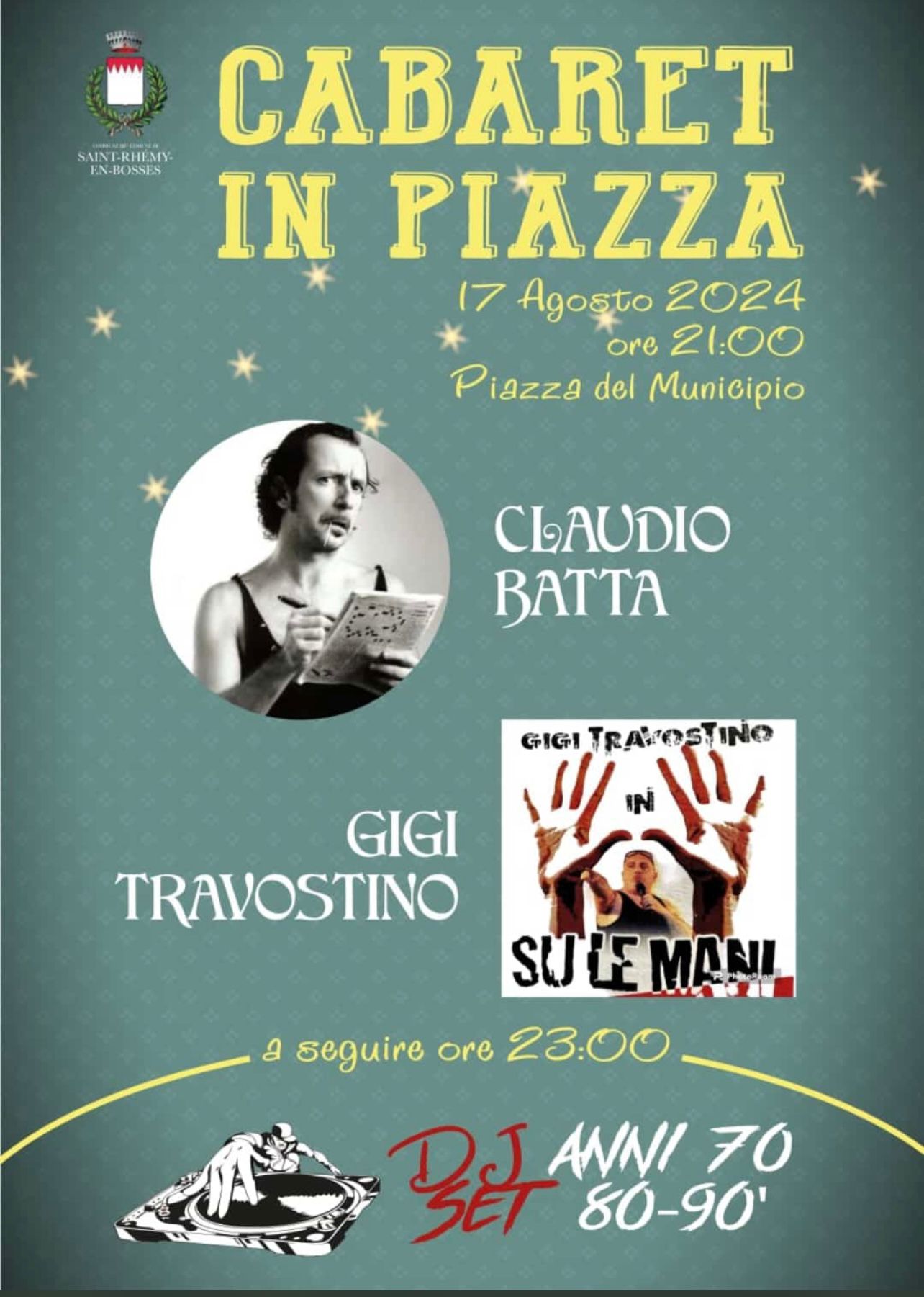 ore 21:00 Sulla piazza del municipio cabaret con Claudio Batta e Gigi Travostino