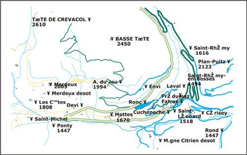 Dall'alpe, la strada procede verso destra, incrocia il canale irriguo denominato ru de Vullien e guadagna quota inoltrandosi in un bel bosco di larici. A un bivio, il percorso prosegue a sinistra e attraversa il domaine skiable di Crévacol. L'itinerario offre notevoli scorci panoramici sul versante prospiciente ove si disegnano il colle Serena, che dà accesso alla Valdigne, e il Col-de-Citrin che conduce nel vallone di Vertosan nel territorio comunale di Avise. Proseguendo, il tracciato guadagna ancora quota sino a pervenire ai resti di alcune fortificazioni e al colle di Crévacol, punto di controllo eccezionale sul frequentato valico del Gran San Bernardo. Dal colle è in breve possibile raggiungere il cupolone della Tête-Crévacol (2610 metri) che, posta tra la valle del Gran San Bernardo e il vallone di Malatrà, ospita un piccolo casotto del Corpo Forestale Valdostano. Il panorama che si apre è davvero straordinario. Ecco sfilare gli eleganti profili di superbe vette: dal Grand-Combin al Mont-Vélan e al colle del Gran San Bernardo, dalle Grandes-Jorasses al Monte Bianco, nonché la Becca di Nona e il Monte Emilius che sovrastano il capoluogo regionale.