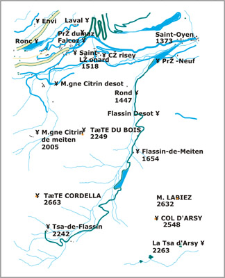 In località Pré-Neuf, in prossimità di un campeggio, prende avvio una strada poderale che si inoltra nel vallone di Flassin giusto in faccia all'abitato di Saint-Oyen. Sotto i ripidi pendii della Tête-du-Bois-de-Quart, la strada sale nel bosco di conifere costeggiando i pascoli che durante la stagione invernale si trasformano in facili piste da sci. Superata la stazione d'arrivo dello skilift, l'itinerario sfiora Flassin-Désot (1534 m) e con alcune svolte raggiunge i pascoli che circondano Flassin-di-Meiten (1650 m) con la sua piccola cappella datata 1934 e denominata Autel de la Vierge. La strada rientra nel bosco e in breve giunge agli edifici di Flassin (1696 m). Il tracciato prosegue la sua salita nella comba al centro della quale scorrono rapide le acque del torrente. Una serie di tornanti conduce velocemente in quota; in corrispondenza di uno di questi si stacca un sentiero che per aperti pendii raggiunge l'alpe di Tsa-de-Flassin (2242 m): una piccola cappella annuncia l'arrivo all'alpe. Poco più in alto si staglia il col de Flassin, stretta depressione che collega la comba di Flassin alla Comba di Vertosan, la massiccia mole del Mont-Fallère, il Mont-Flassin e la Testa Cordella.